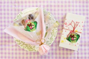 15周年記念アート「hapiness of jackie」の四ツ葉のクローバーをモチーフにオリジナルフレーバーを開発。オリジナルフレーバー入りのボンボンキャラメルブーケを発売。ラッピングも「くまのがっこう」15周年オリジナルアートでかわいく装飾。人気のチーズケーキ「ガトーフロマージュ」もイベント期間中は6種のラッピング用紙から外紙が選べます。