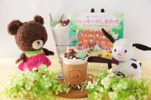 人気の絵本『ジャッキーのしあわせ』『ジャッキーのはつこい』『ジャッキーのゆめ』の3作をイメージしたコラボメニュー(クレープ3種、タピオカドリンク3種)が登場。店内も「くまのがっこう」15周年アートで飾られます。